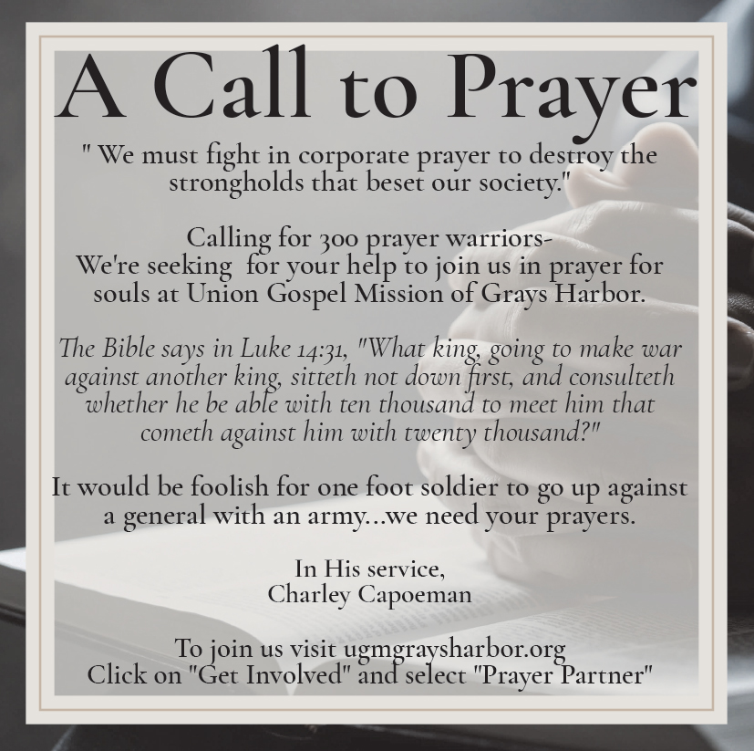 First, I want to thank everyone who has supported us along the way—we are deeply grateful for your prayers and encouragement. We pray that all is well with each of you who stand with us here at Union Gospel Mission of Grays Harbor.